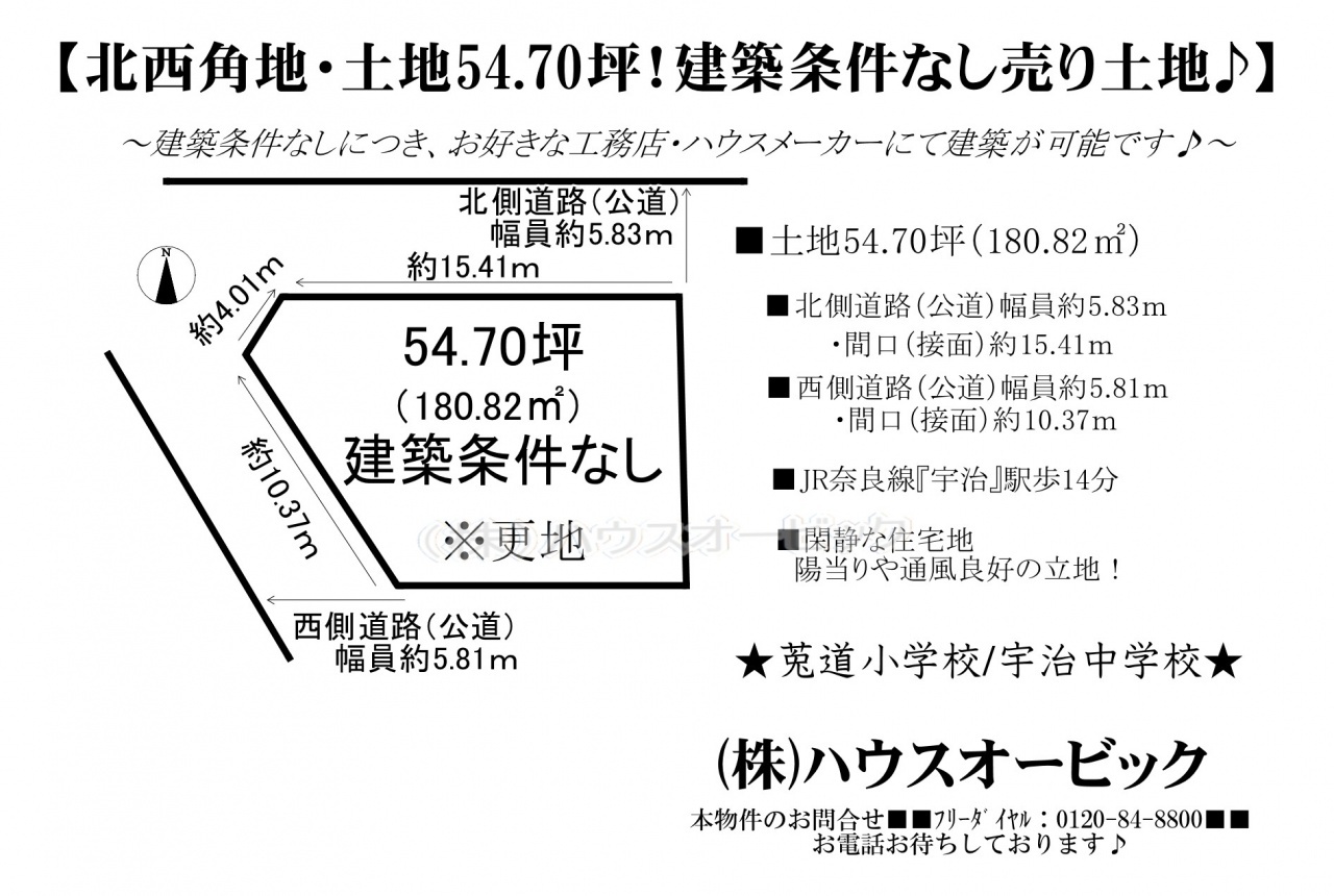 宇治市 不動産 > 宇治市 折居台3丁目 土地(建築条件なし・土地54.70坪・更地・角地