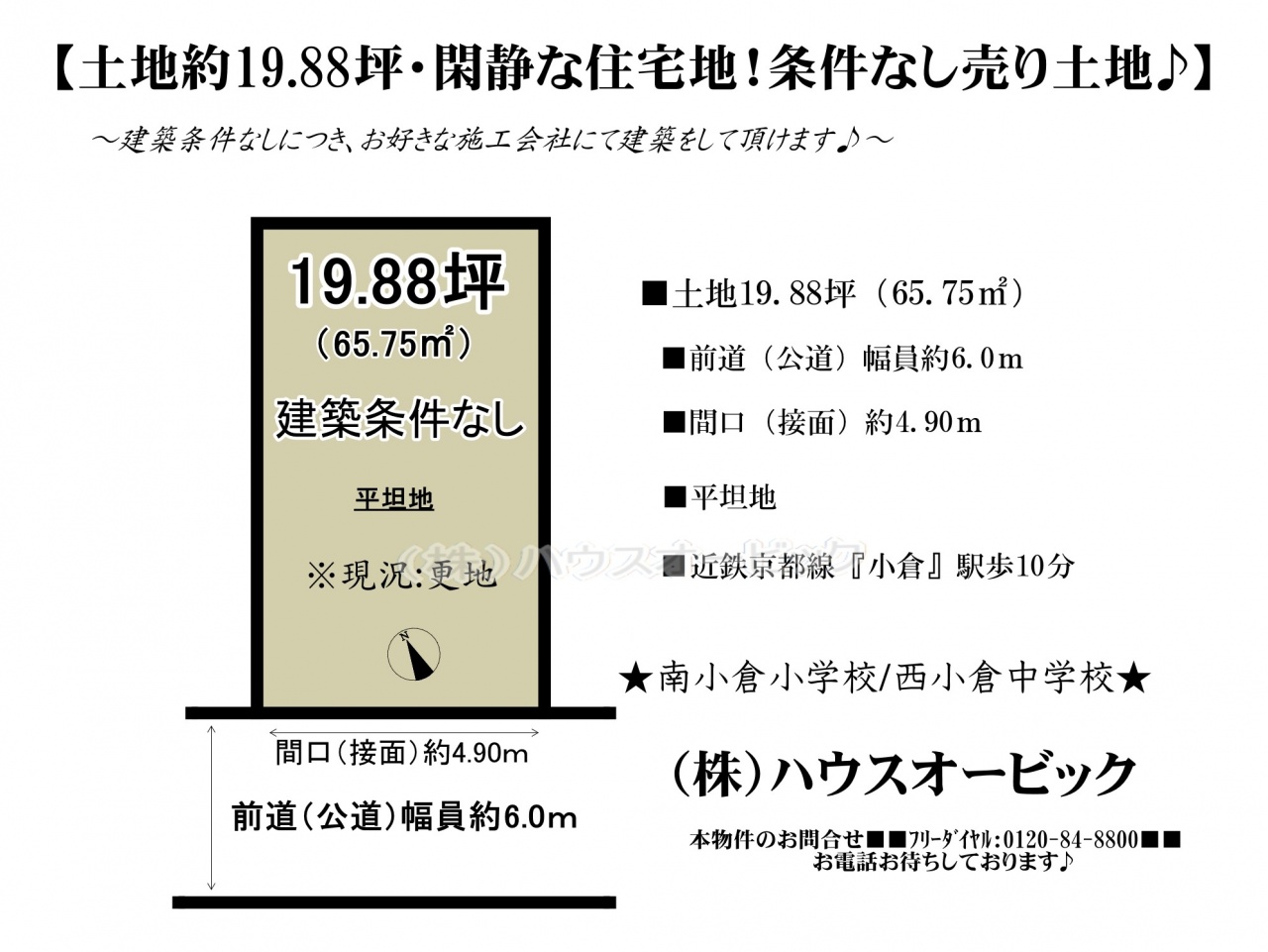 宇治市 不動産 > 宇治市 小倉町南浦 土地(建築条件なし・土地19.88坪・更地)