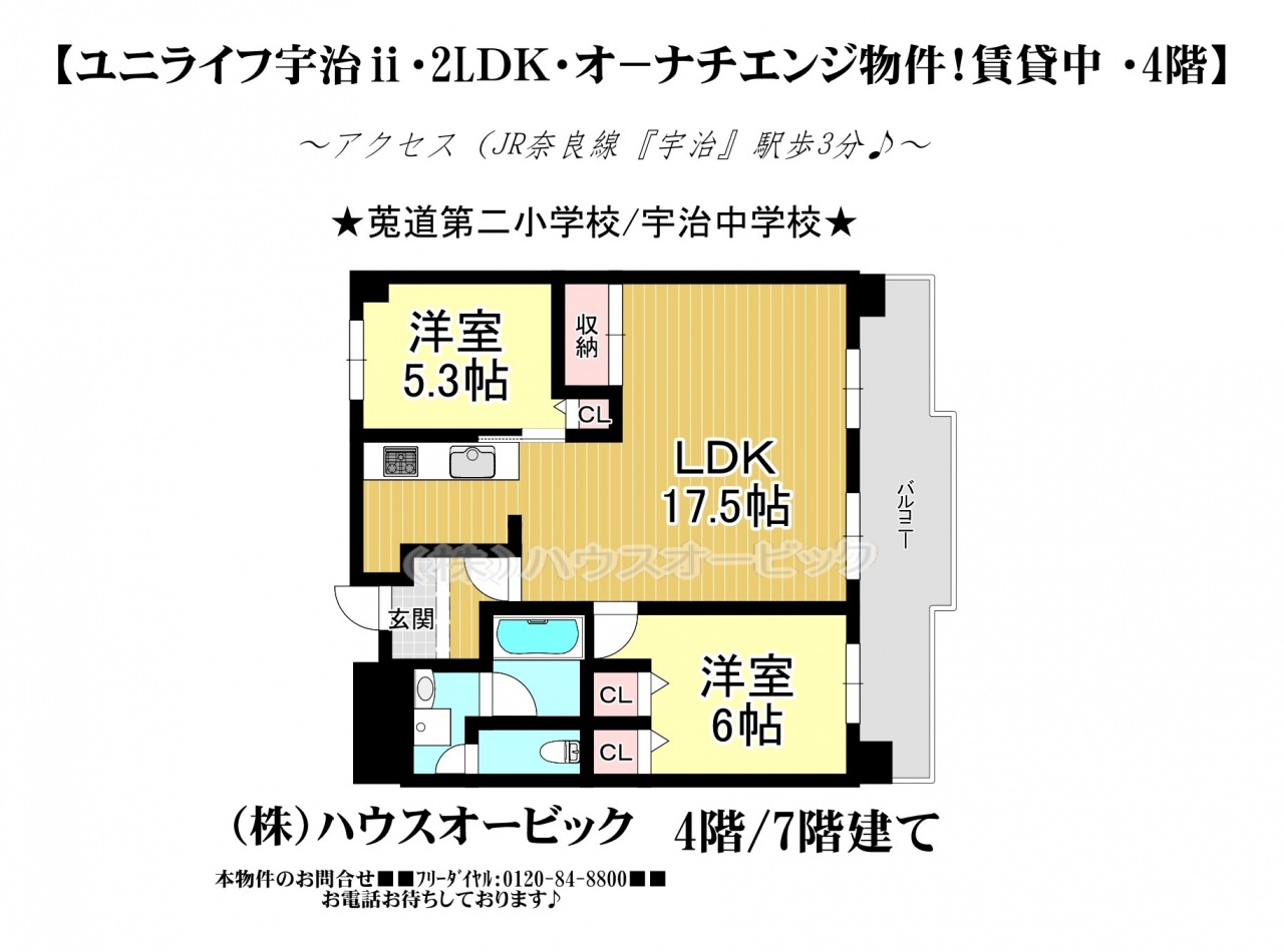 宇治市 不動産 > ユニライフ宇治Ⅱ(オーナーチェンジ物件・家賃8.2万円・4階部分・賃貸中)