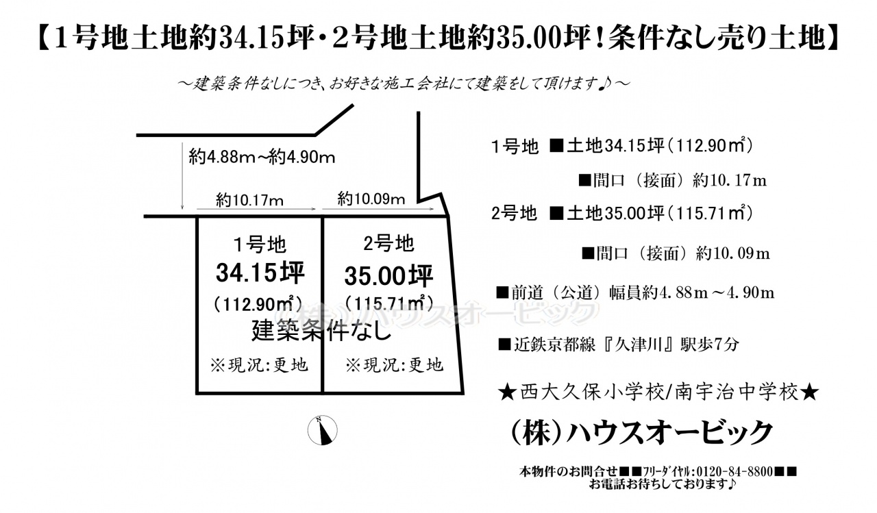 宇治市 不動産 > 宇治市 大久保町大竹 土地2号地(建築条件なし・土地35坪・更地)