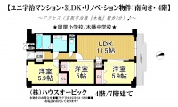 宇治市 不動産 > ユニ宇治マンション3号館(リノベーション物件・3LDK・4階)