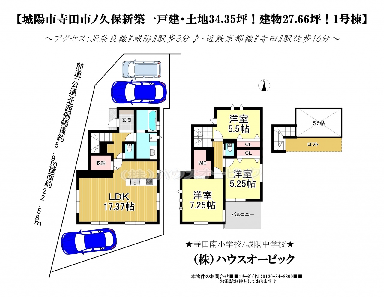 宇治市 不動産 > 城陽市 寺田市ノ久保 新築一戸建て(制震ダンパー・駐車2台・パントリー・ロフト)