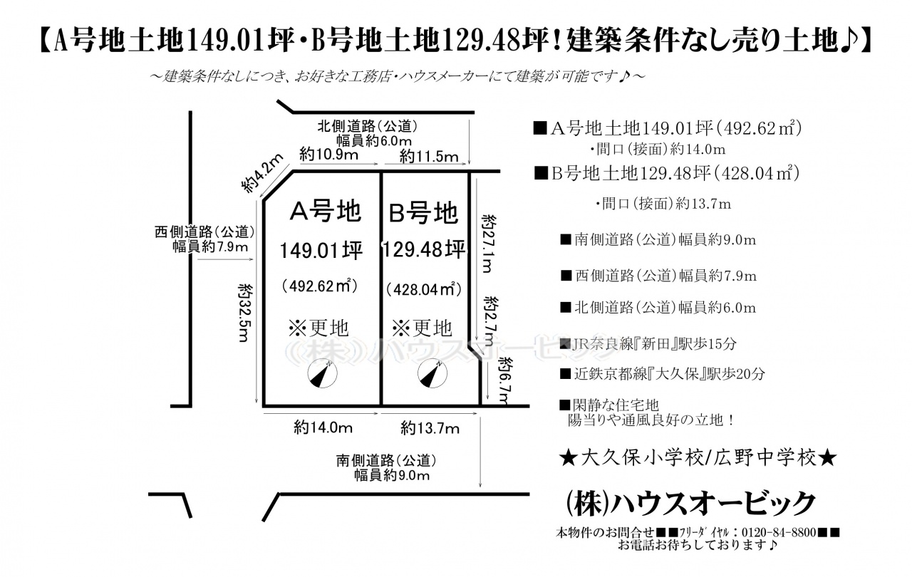 宇治市 不動産 > 宇治市 寺山台2丁目 土地A号地(建築条件なし・土地149.01坪・3方角地・更地)