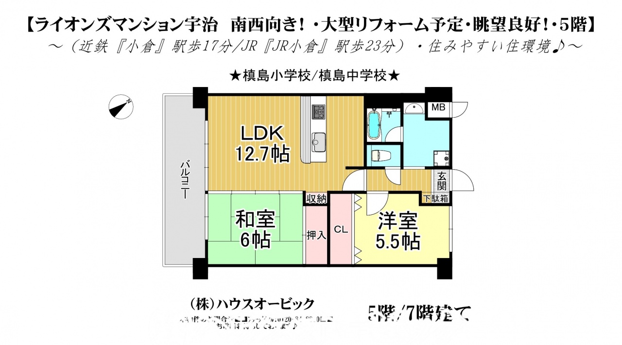 宇治市 不動産 > ライオンズマンション宇治(大型リフォーム予定・2LDK・7階建の5階)
