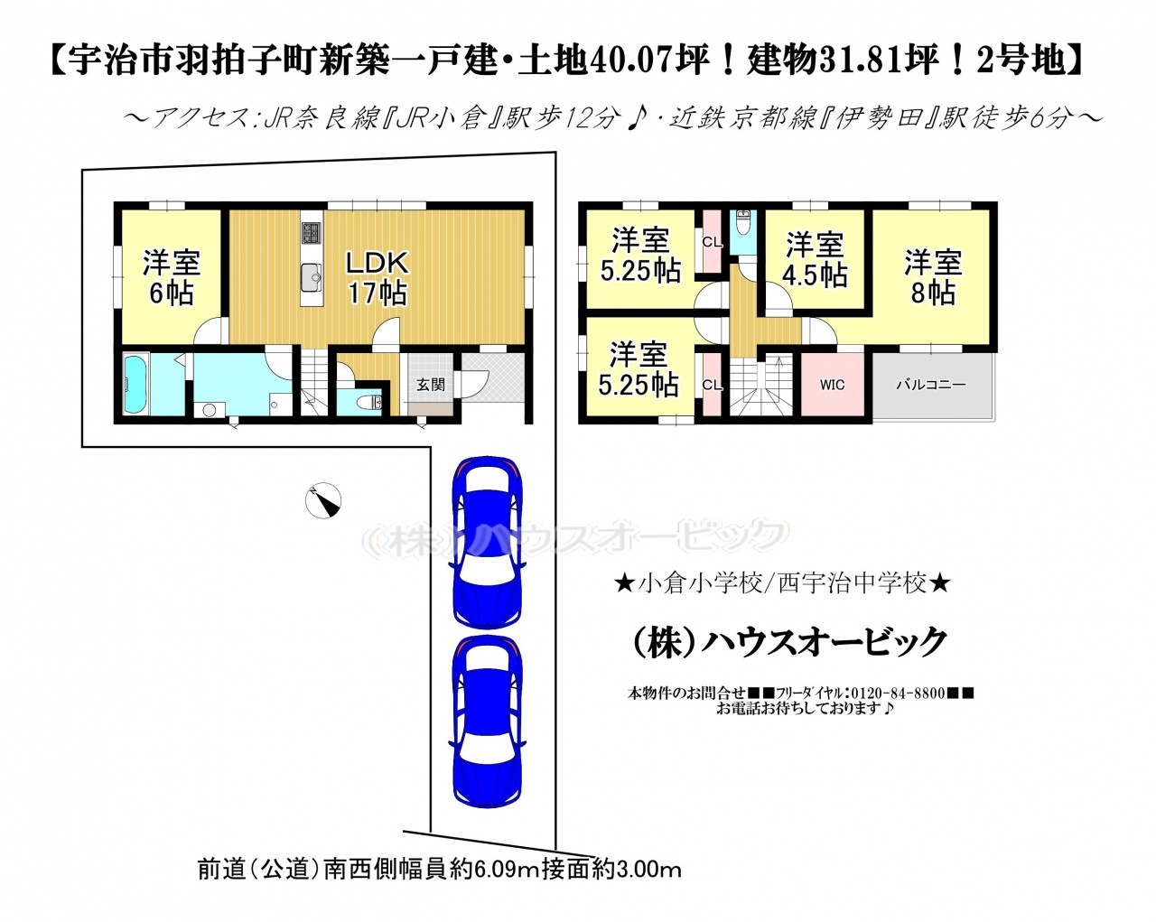 宇治市 不動産 > 宇治市 羽拍子町 新築一戸建て2号地(建売・土地40.07坪・間口3m)