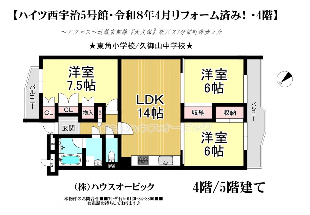 宇治市 不動産 > ハイツ西宇治5号棟(令和8年4月リフォーム済・3LDK・ペット飼育可・空家)